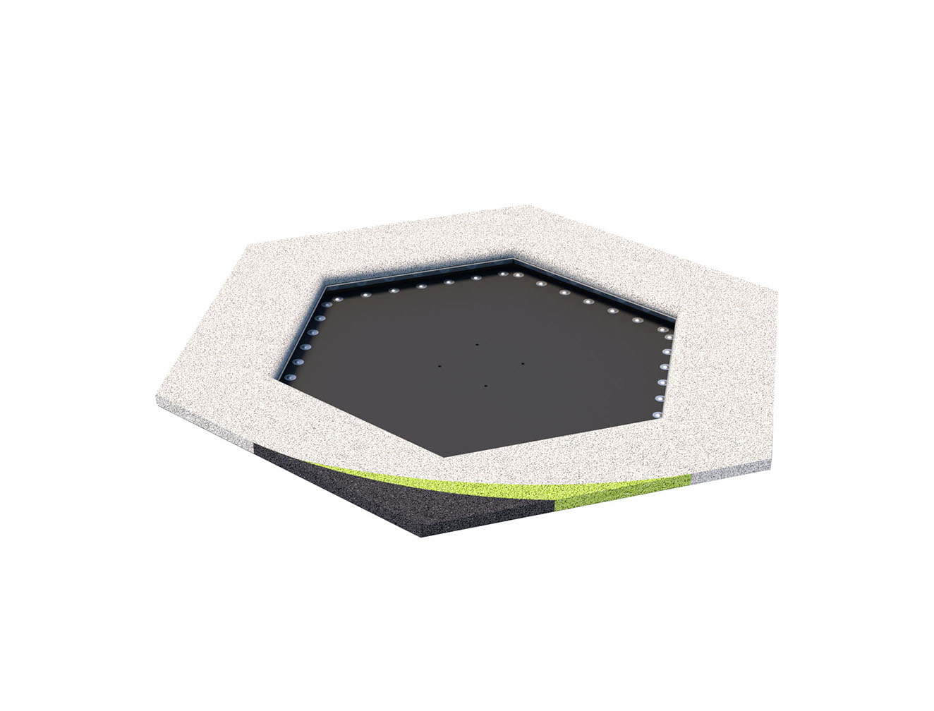 By illuminating the trampolines, it is possible to obtain an additional effect increasing the visual attractiveness of the investment and the fun itself. Lighting improves the safety of users after dark. Colorful or white LED light illuminates the legs, mat and surfaces under the trampoline. The lights can be permanently on or they can light up by jumping on a trampoline.