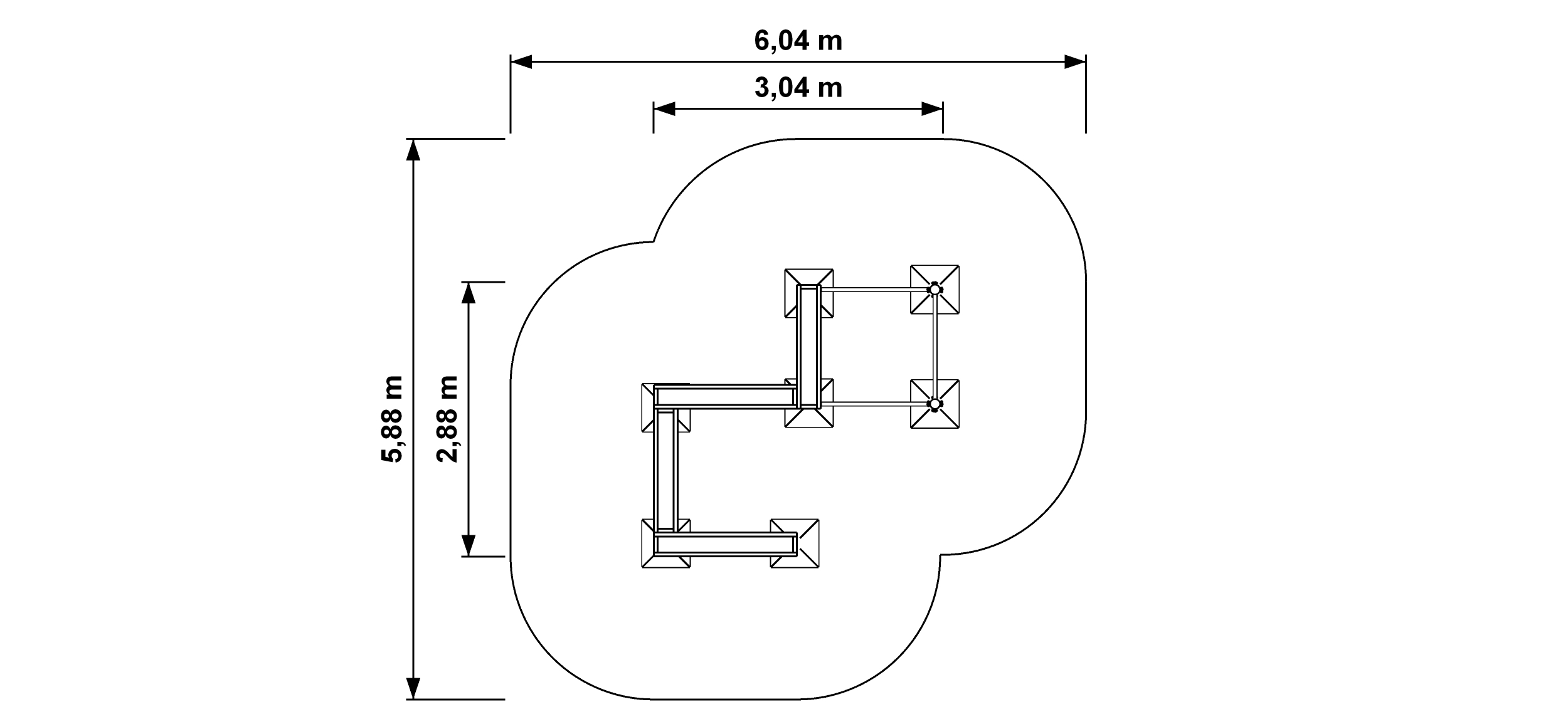 Wymiary strefy bezpiecznej 604x528 cm |