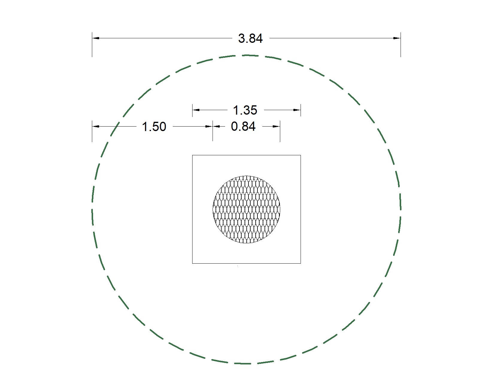 Wymiary strefy bezpiecznej 384x384 cm |