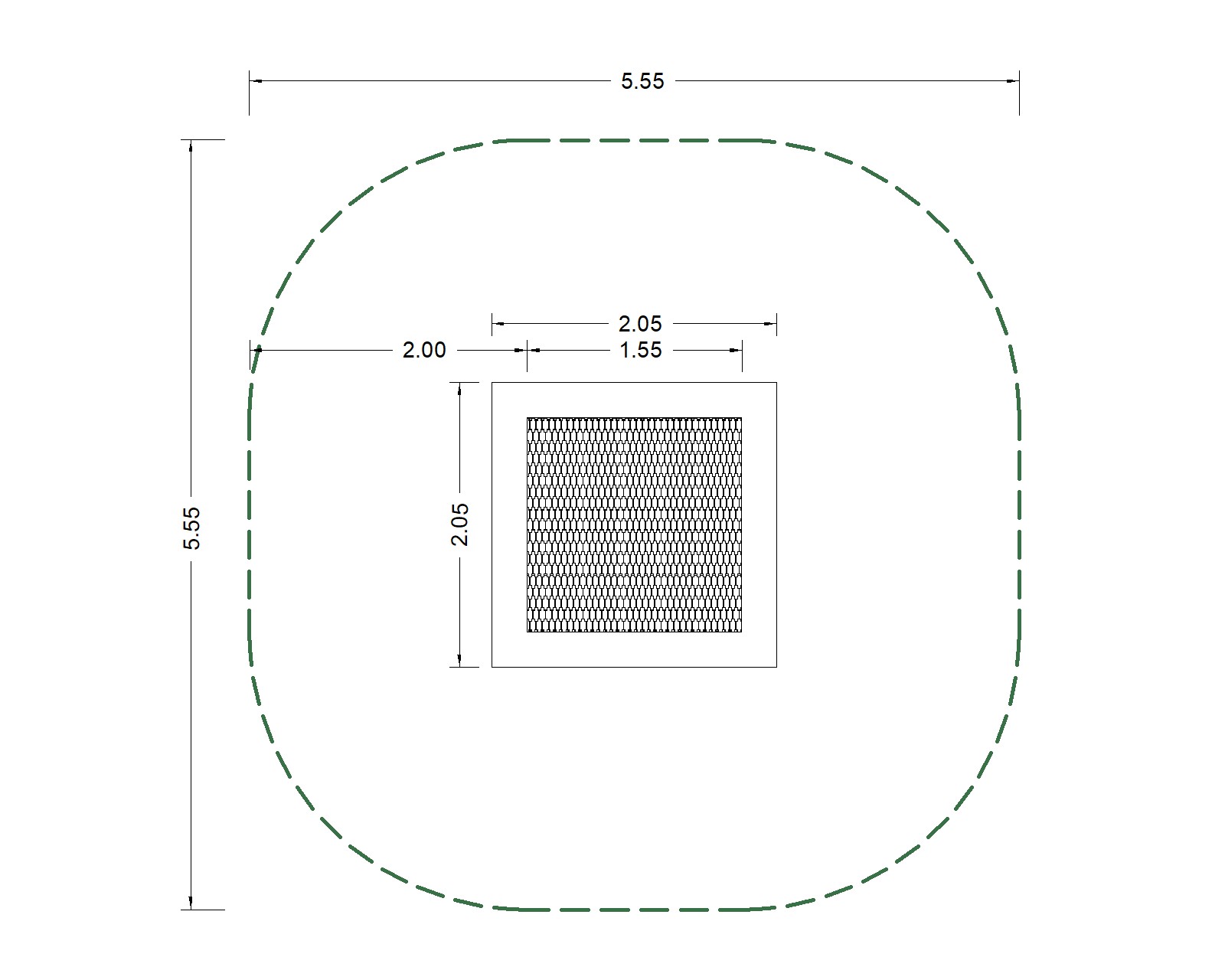 Strefa bezpieczeństwa 554x554 cm (pow. 27,3 m2) |