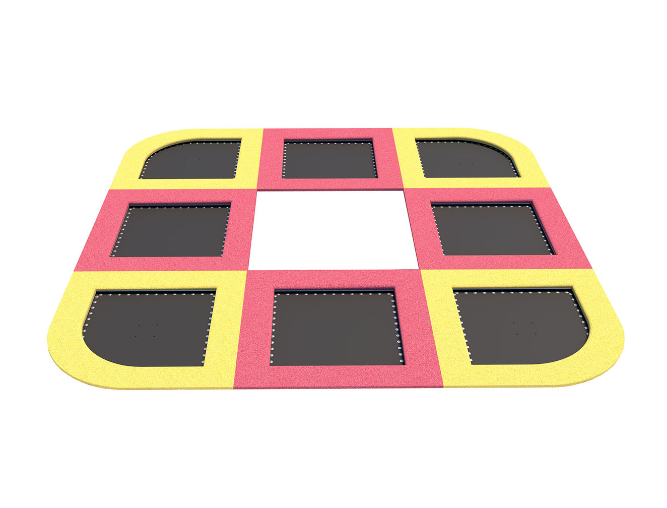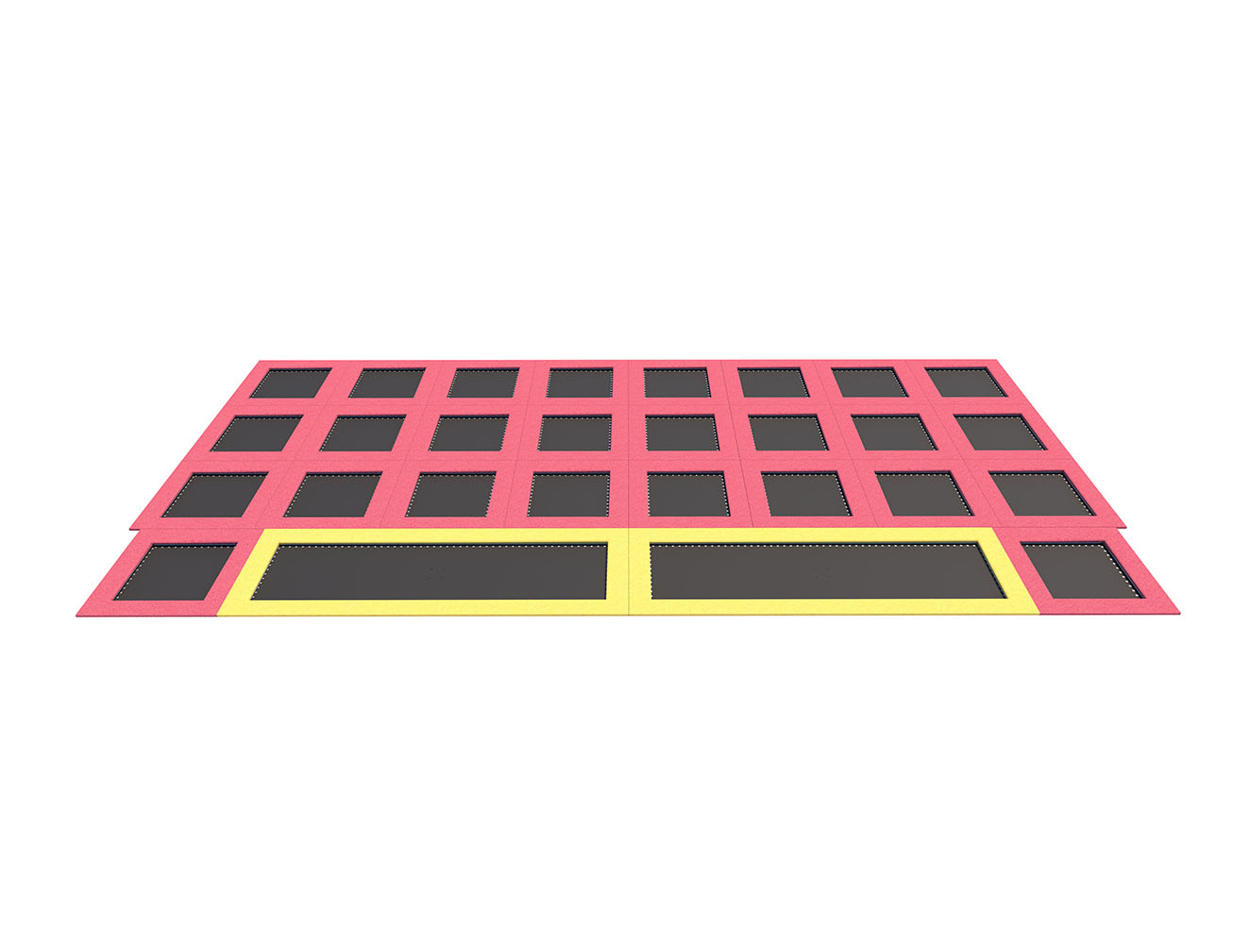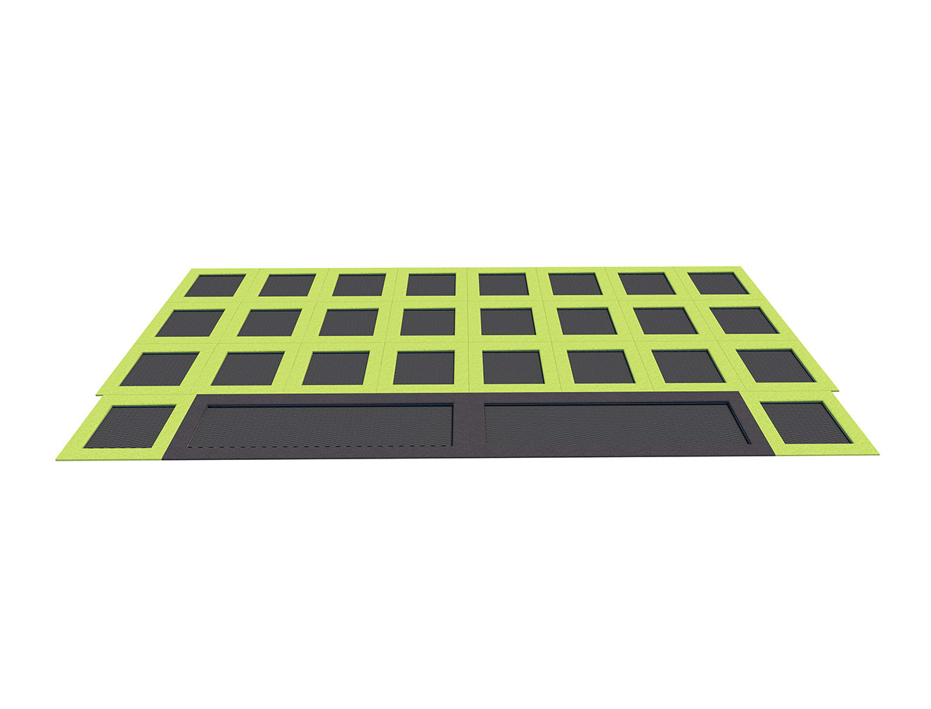 By illuminating the trampolines, it is possible to obtain an additional effect increasing the visual attractiveness of the investment and the fun itself. Lighting improves the safety of users after dark. Colorful or white LED light illuminates the legs, mat and surfaces under the trampoline. The lights can be permanently on or they can light up by jumping on a trampoline.