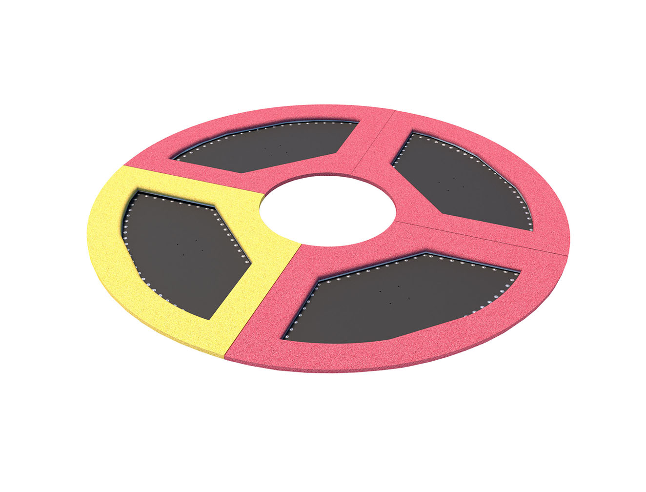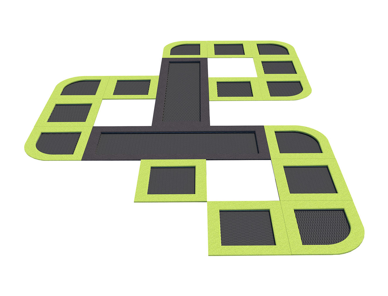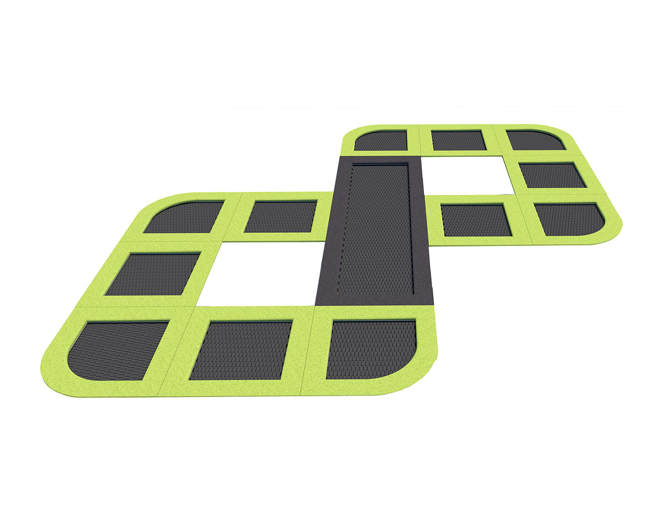By illuminating the trampolines, it is possible to obtain an additional effect increasing the visual attractiveness of the investment and the fun itself. Lighting improves the safety of users after dark. Colorful or white LED light illuminates the legs, mat and surfaces under the trampoline. The lights can be permanently on or they can light up by jumping on a trampoline.