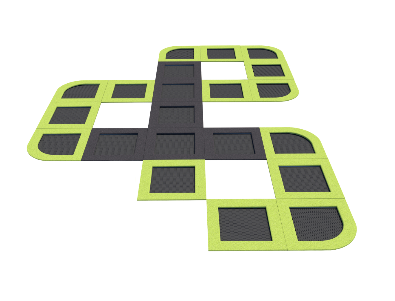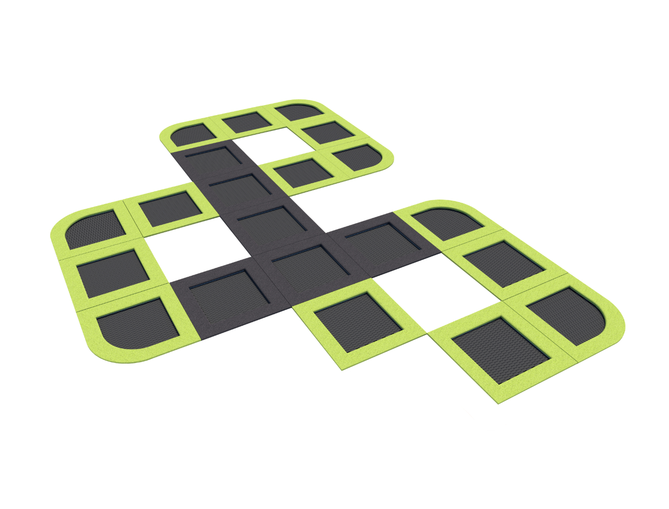 Najdłuższy, bo liczący ponad 23 metry, z naszych trampolinowych torów składający się z 21 trampolin. Zestaw tworzy trasę, która zaspokoi potrzeby najbardziej wymagających użytkowników. Grzechotnik daje możliwość jednoczesnej zabawy przez wielu użytkowników, prowadzenie grupowych treningów i zajęć fitness. Doskonale sprawdza się w przestrzeni publicznej charakteryzującej się dużą frekwencją i samodzielnie może tworzyć turystyczną atrakcję i autonomiczną strefę rekreacji i zabawy.