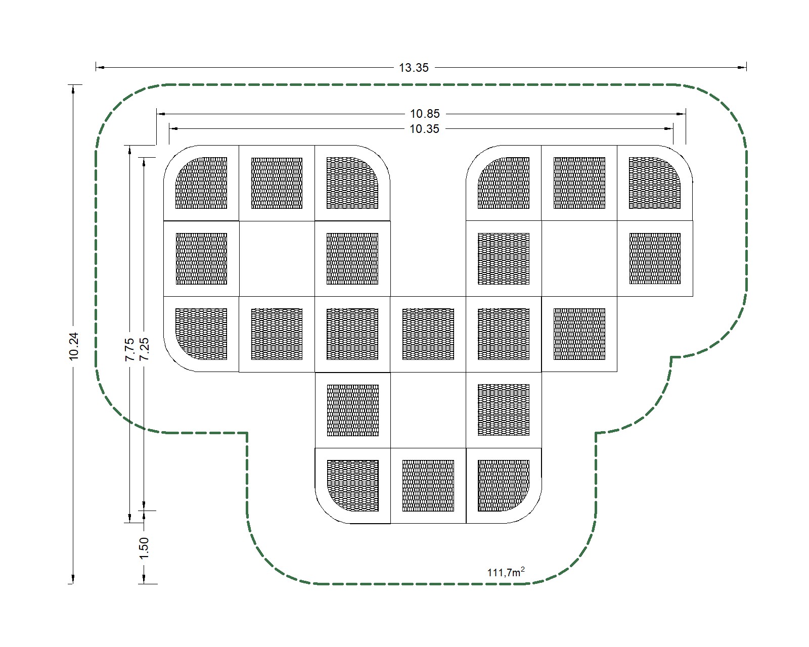 Wymiary strefy bezpiecznej 1335x1024 cm |
