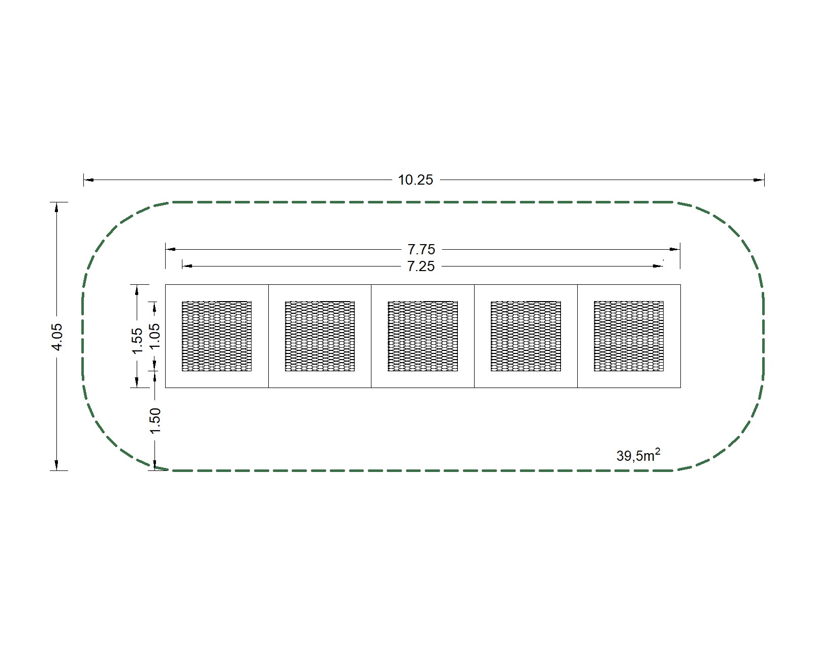 Wymiary strefy bezpiecznej 1025x405 cm |